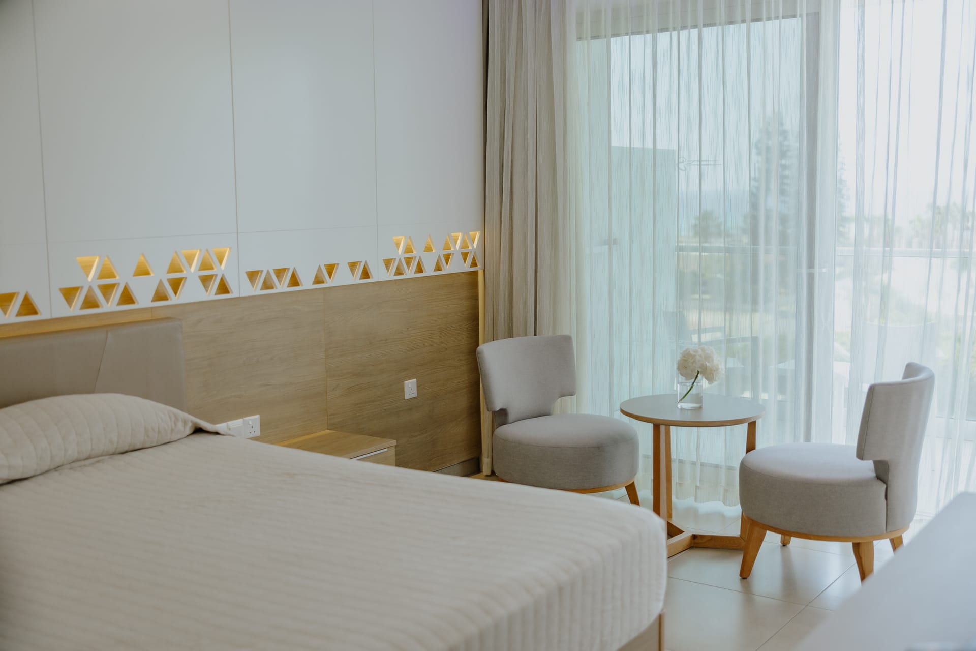 Every room is fully airconditioned, comes with a private balcony with chairs and coffee table, en-suite walk-in rain shower and WC, direct dial telephone, safety deposit box, hairdryer, tea & coffee making facilities, mini fridge, and free WIFI. Each room is fitted with a flat-screen TV with satellite channels.